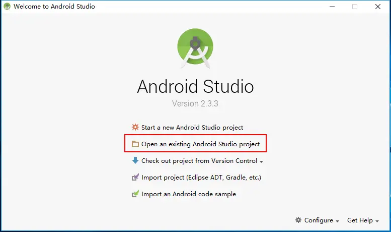 在AndroidStudio的欢迎界面,你需要点击右下方的Configure进行老版本的SDK tool配置,