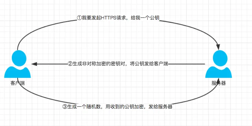 - 客户端: 我要发起HTTPS请求,麻烦给我一个非对称加密的公钥;