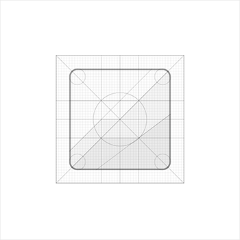 参考线的形状是网格的基础。利用这些核心形状做为向导,即可使整个相关产品的icons保持一致的视觉比例。