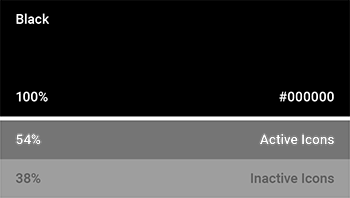 触发状态下的icon在浅色背景上的标准不透明度是54%(#000000)。未触发状态下的icon不透明度则是26%(#000000)。
