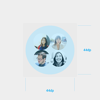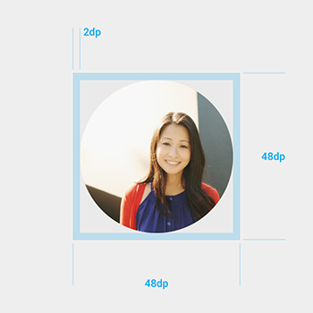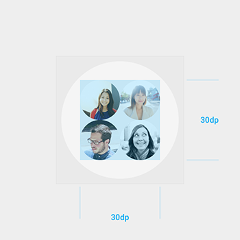 头像区域必须符合30X30dp大小。以44x44dp的圆(活动区域)为中心,并处于活动区域之内。