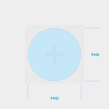 44x44dp的活动区域周围存在2dp的内边距,且整个区域大小为48x48dp