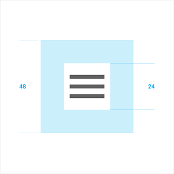 活动区域周围存在2dp的内边距。总大小是48x48dp