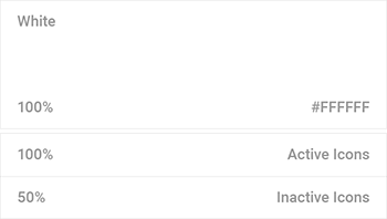 触发状态下的icon在深色背景上的标准不透明度是100%(#FFFFFF)。未触发状态下的icon不透明度则是50%(#FFFFFF)。