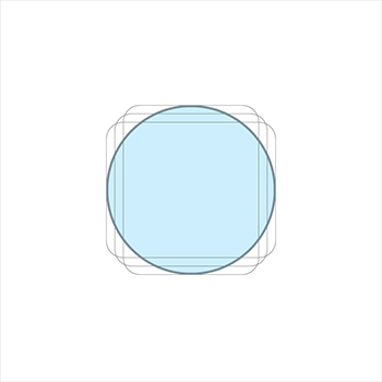 快捷icon是圆形的。它们包含一个标准的系统icon(或者至少有一个头像)。Icon的内容必须整齐的放置在区域内(图形的区域)。