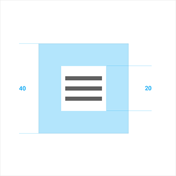 在高密度的屏幕上,icon的活动区域可能被缩减至20dp,附加区域为2dp。