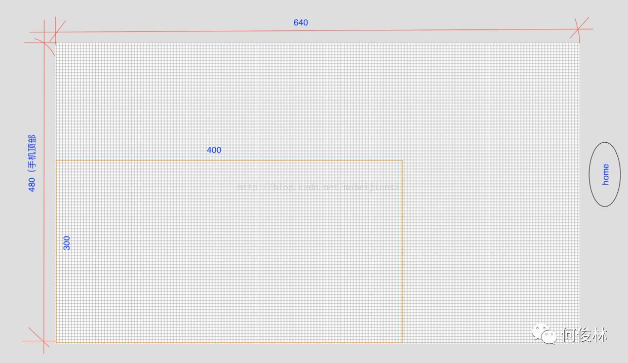 我们这里假设我们采集的视频宽是640,高是480,我们要剪切成宽是400,高是300的视频。根据上面的知识我们能指定640*480的一帧byte数组里面将会有640*480个Y,且排在最前面,然后有(1/4)*640*480个V,然后有(1/4)*640*480个U,我们要剪切成400*300,自然是保留一部分数据即可。我们先对Y建立一个模型,既然是640*480,我们可以把它当成一行有640个Y,一共有480行,如下图所示红色标注内表示640*480个Y,而黄色区域内则是我们剪切完成的Y的所有值。