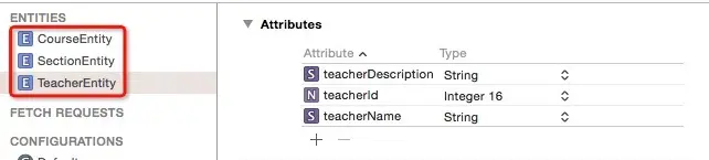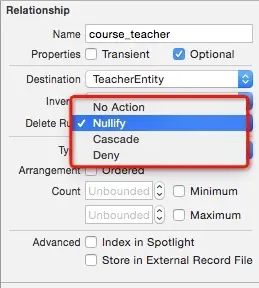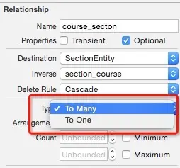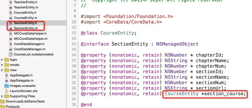 假设要删除一个课程,与此课程相关联的章节是否删除;或者说删除一个章节,这个章节对应的课程是否删除.这个就涉及到多表操作,设置表之间的级联关系.接下来以coreData设置一一讲解