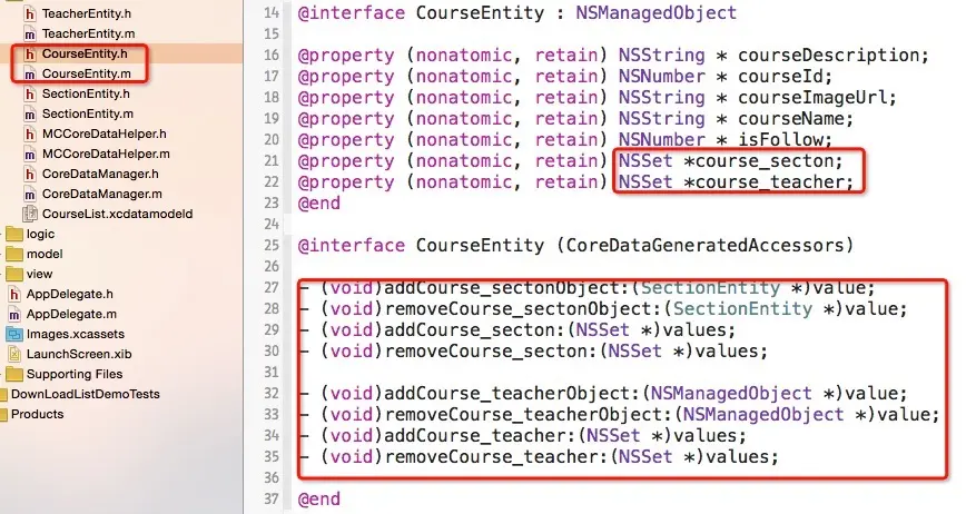 课程对应的章节以及教师都是多个,生成NSSet 存储 并生成相应方法