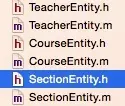 3)使用创建的对象生成相应地文件:.h和.m(方法见"CoreData单表创建使用")