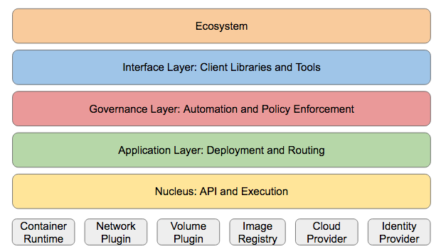 作为两岁的 Kubernetes,从问世之初专注于容器服务管理成绩斐然,而我们真正要实现如 Google 一样纯粹的容器化数据中心(没有且不需要 IaaS、PaaS 的分层),则需要围绕 Kubernetes 建立一个完整的集群管理体系。笔者认为依据现在 CNCF 和 Kubernetes 的定位,并随着企业对于 Kubernetes 使用深度的增加,在 Kubernetes 四岁之际,会布局成一个完善的容器化集群管理生态体系。