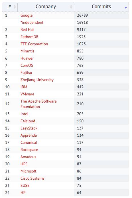 图 2. Kubernetes 社区的主要贡献公司【3】