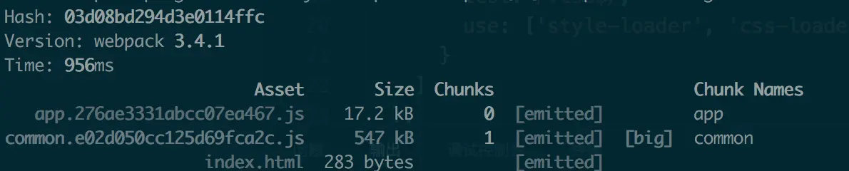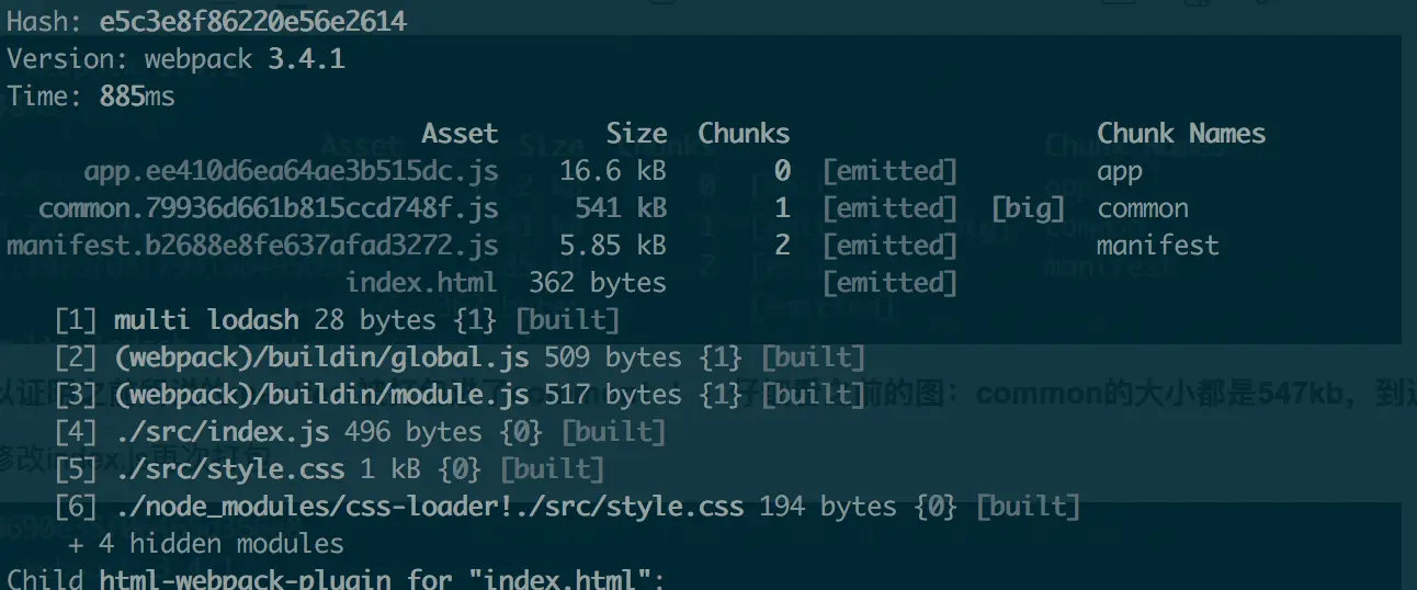 奇怪的是,虽然common与app生成了单独的hash值,但是修改了index.js,common的hash值还是发生了变化。