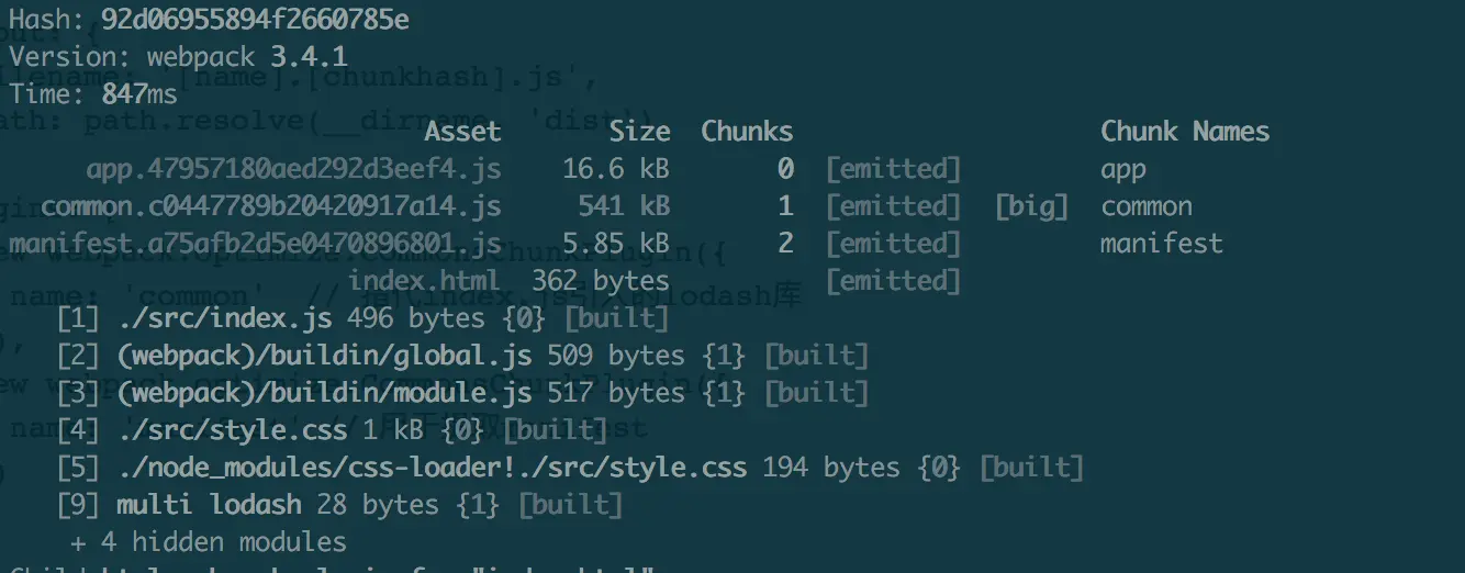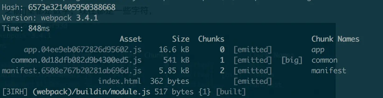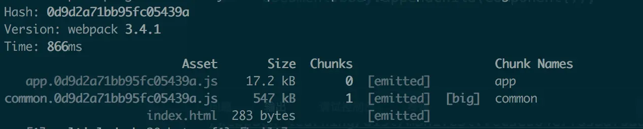现在大功告成,common的hash没有改变,而因为更变了内容app的hash改变了,这正是我们想要的结果。