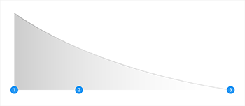 为了避免banding (鲜明的条纹形状),渐变需要足够的长度,3x于标准应用栏的高度,距离中心大约3/10的位置(朝向深色端)。这样做会让渐变自然衰减并且避免锋利的边缘。
