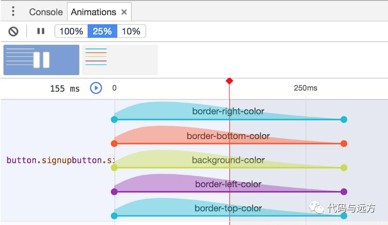 单击控制台左上角的下拉框中的“动画”开启动画调试工具,你可以通过它限制站点上所有动画的速度。