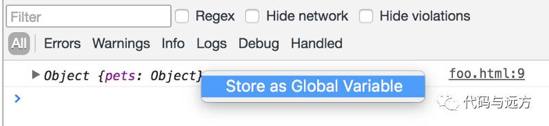 有时在控制台中查看一个复杂对象是一件很麻烦的事,因为他们可能有很多的键值或者一些很难手动解析的值。幸运的是,Chrome可以让检查这类JavaScript对象变得很容易。 你只需在控制台中右键点击对象后选择“存储为全局变量”,chrome就会将这个变量存储为一个名叫“temp1”的变量,之后你可以通过Javascript对其进行操作。