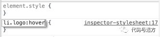 例如,如果我想要给一个logo类的li标签添加hover伪态样式,我需要构造一个新的伪类li.logo:hover,并且给他添加相关属性。