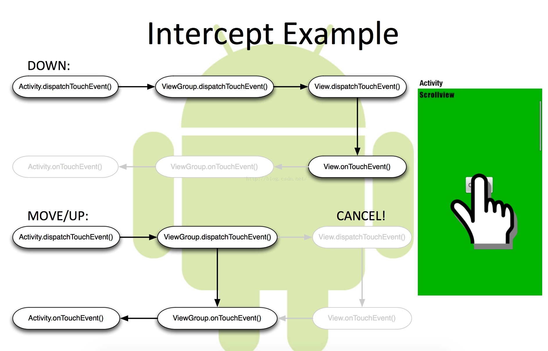 Android中的dispatchTouchEvent()、onInterceptTouchEvent()和onTouchEvent()