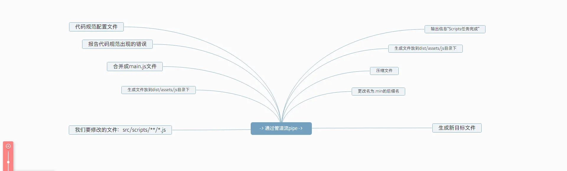 我们要修改编译、合并或者压缩的文件都放在一起,然后通过管道流,管道流里面含有多种的插件,这些插件会按照你指定的操作顺序的方法进行对文件的操作,操作过后生成新的目标文件。
