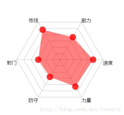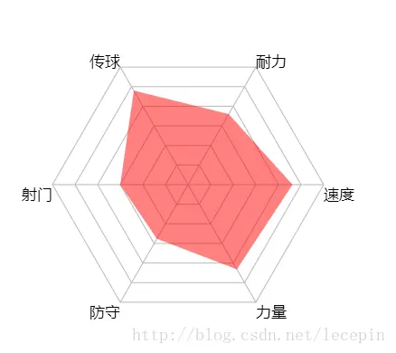 雷达图又叫蜘蛛网图,是一种对各项数据查看很明显的表现图,在很多游戏中,对游戏中的每个角色的分析图一般也用这种图。