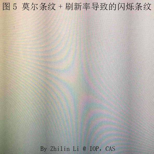 刷新率导致的条纹是时间上的不同步导致的,而莫尔条纹仅仅是空间上周期图案的效应。