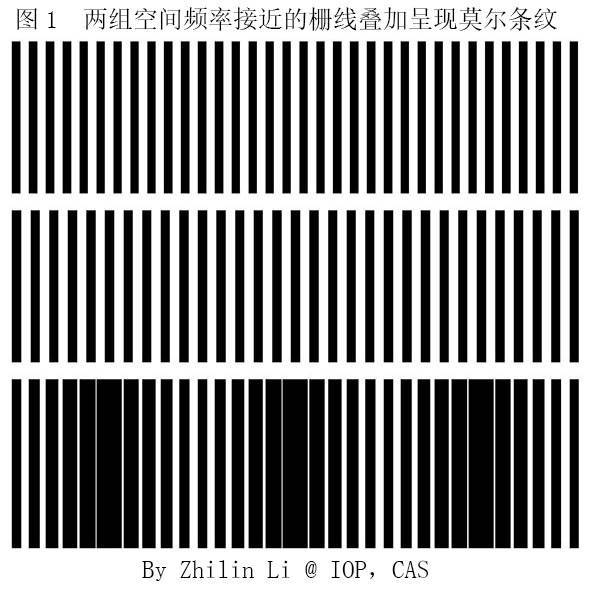 说得这么玄乎,其实道理很简单啦!比如在两张透明塑料纸上分别画一排竖线,上面那张每隔 1 mm 画一条,下面那张每隔 1.1 mm 画一条,很容易发现,竖线每隔 11 mm 就会重叠一次。细线重叠位置附近,露出的间隙较大,显得明亮;而细线不重叠的位置附近,露出的间隙较小,显得灰暗。