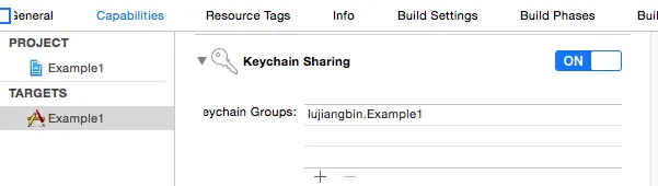 为了实现keychain共享数据,我们需要开启Keychain Sharing,开启方法如下,然后添加设置相同的Keychain Group,不过别忘记了添加Security.framework。