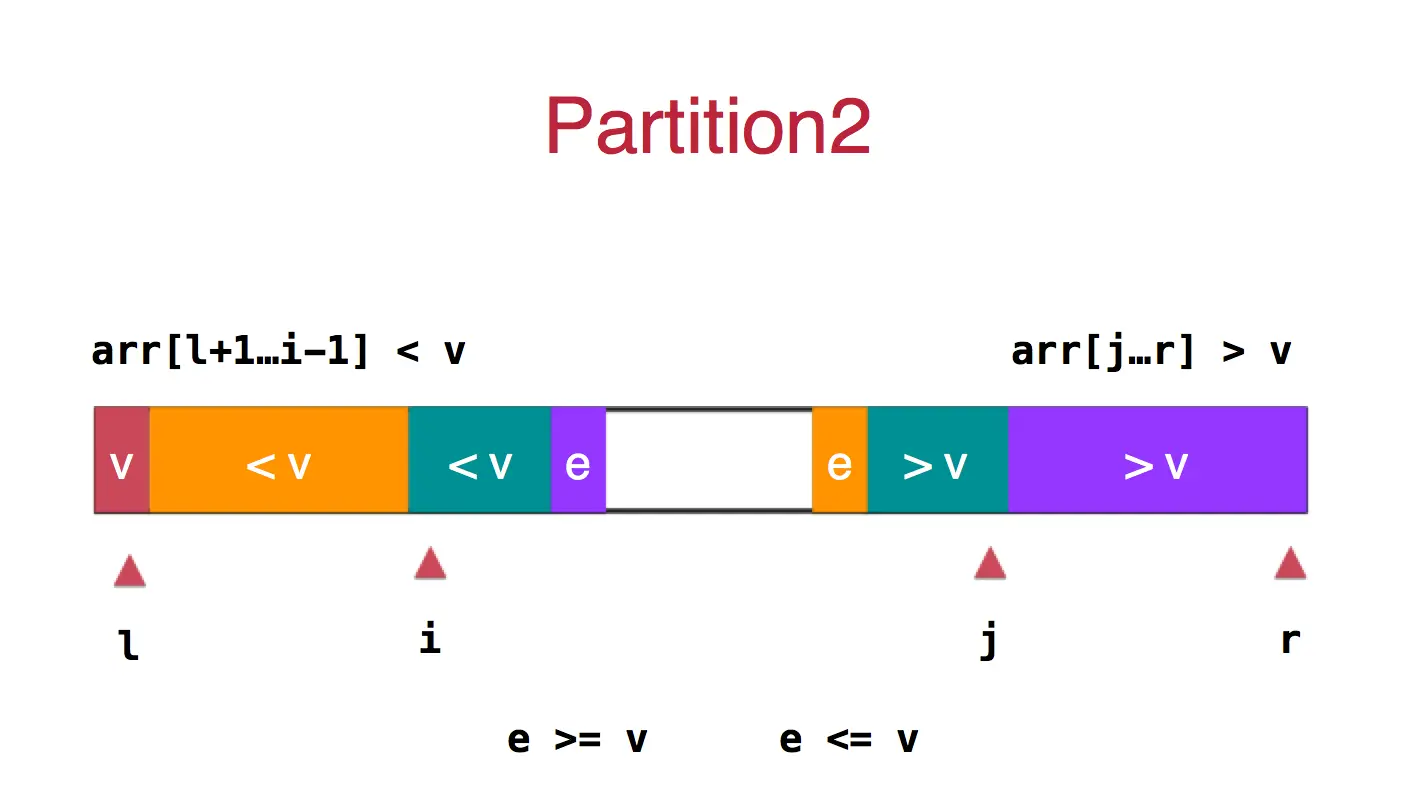 // arr[l+1...i) <= v; arr(j...r] >= v