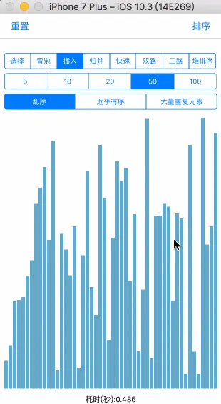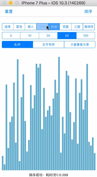 笔者在学习数据结构与算法时,尝试着将排序算法以动画的形式呈现出来更加方便理解记忆,本文配合Demo 在Object-C中学习数据结构与算法之排序算法阅读更佳。