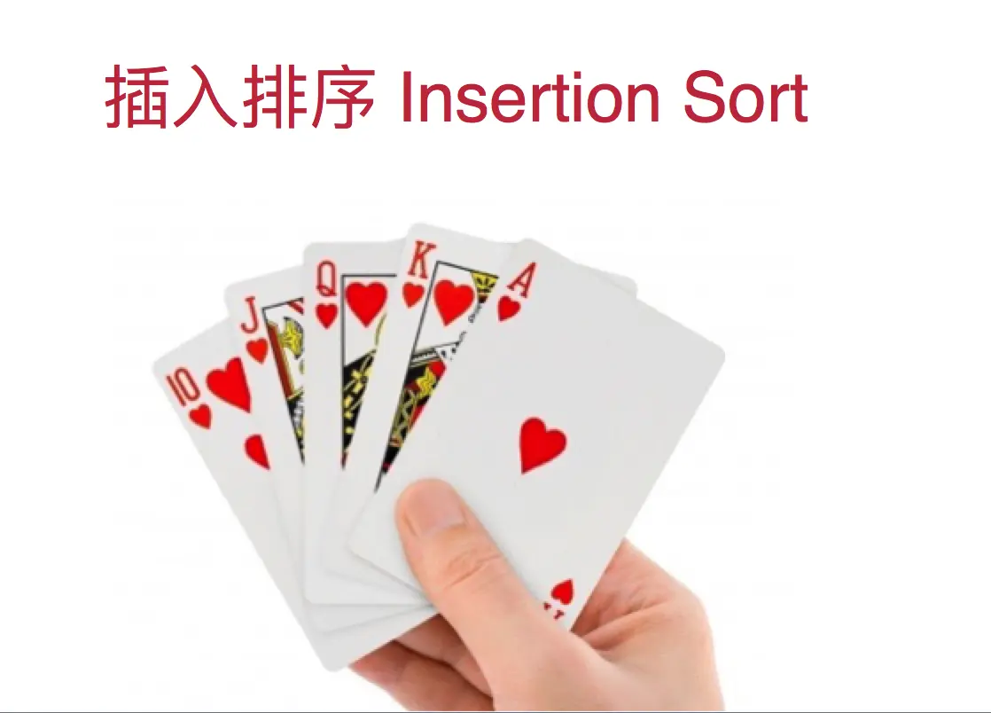 从头到尾依次扫描未排序序列,将扫描到的每个元素插入有序序列的适当位置。(如果待插入的元素与有序序列中的某个元素相等,则将待插入元素插入到相等元素的后面。)