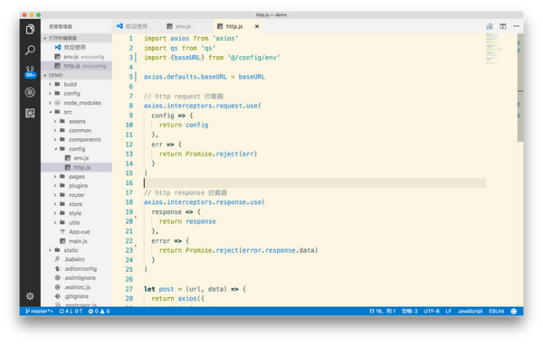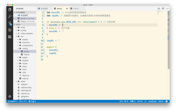 然后config文件夹放置了环境变量文件env.js和封装http库文件http.js