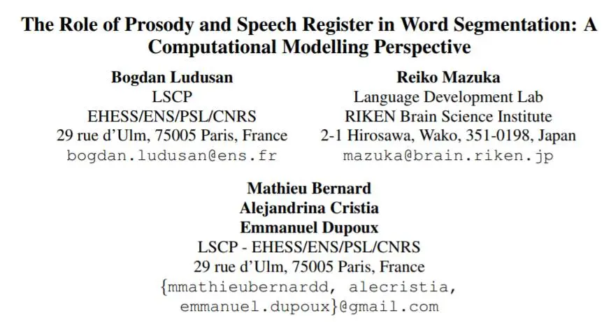 论文作者:Bogdan Ludusan, Reiko Mazuka, Mathieu Bernard, Alejandrina Cristia and Emmanuel Dupoux