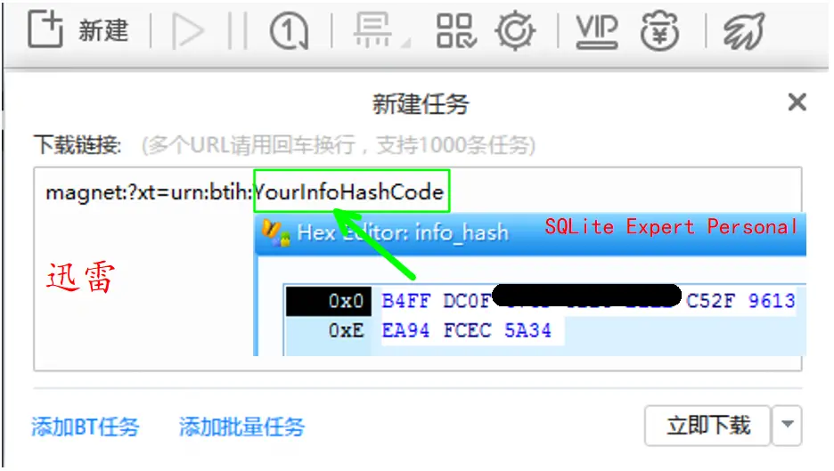 拥有这串16进制码,我们可以轻松构造出磁力链,通常我们会打开迅雷下载,迅雷会自动搜索相应的种子。