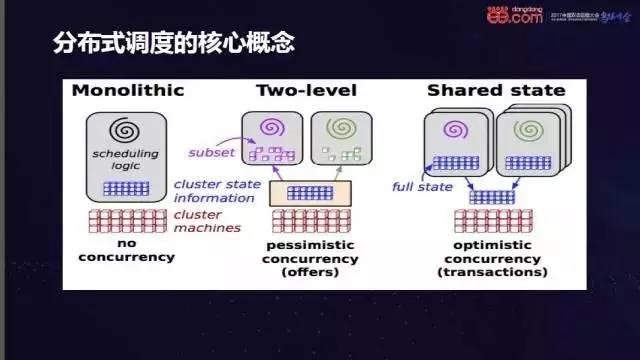 分布式调度系统当前有三种架构:单体式,两阶段以及状态共享。