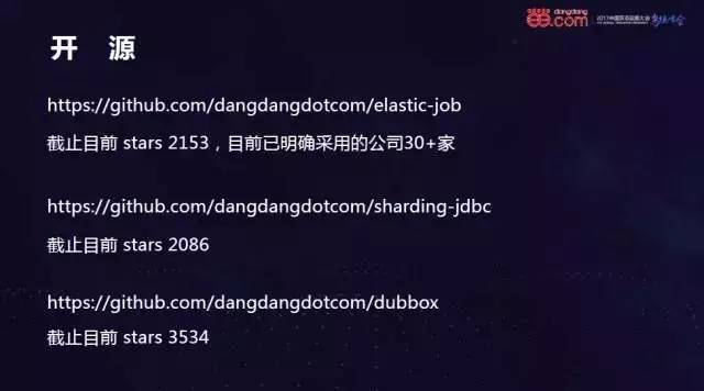 刚才介绍的DubboX、Elastic-Job以及Sharding-JDBC都已开源。