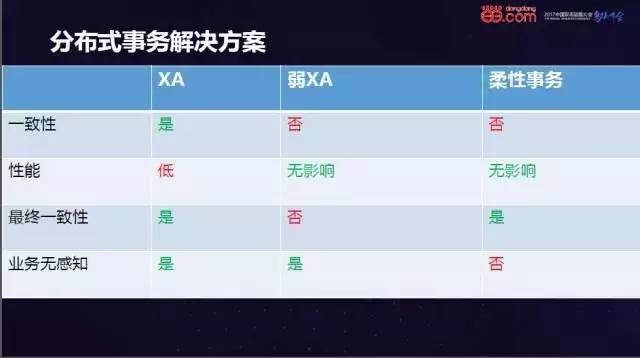 XA即分布式事务,他对业务代码完全没有侵入性,而且也可以保证分布式场景下事务的强一致性,但其性能低下,在互联网的场景下非常不适用。