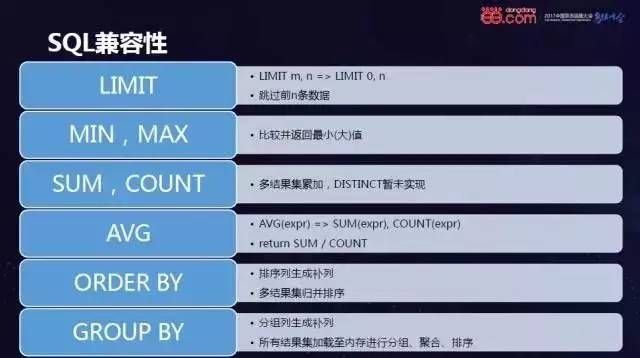 Sharding-JDBC定位是面向在线业务的框架。因此OLTP涉及到的SQL基本都兼容。
