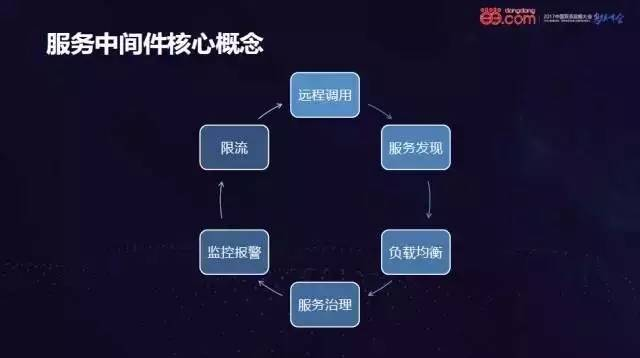 服务中间件有很多优秀的开源产品,从早期的Finagle, Dubbo,到近期出现的Motan,Spring Cloud都是个中翘楚。服务中间件的核心功能主要包括: