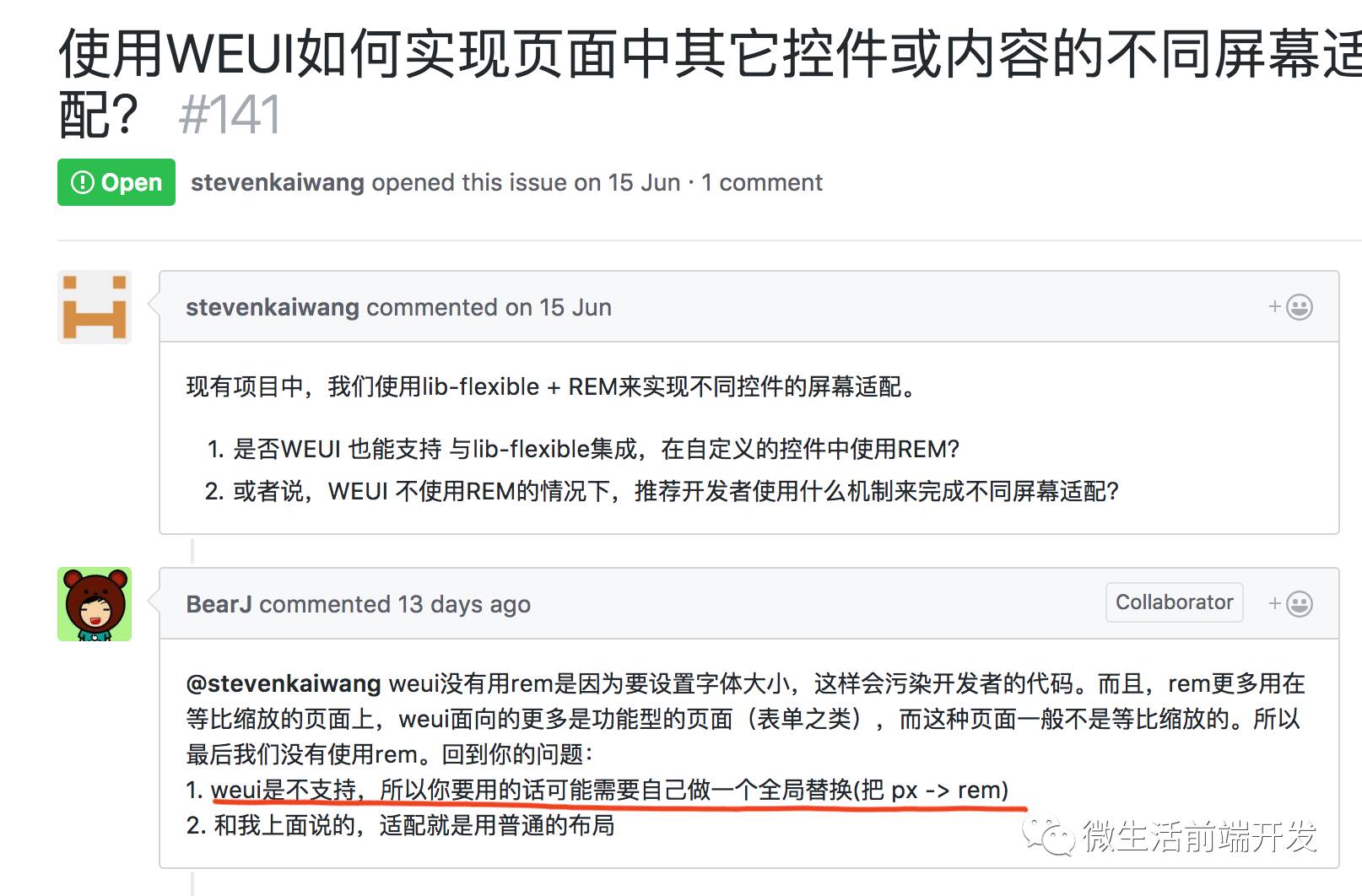 但在移动页面开发的过程中,另一个高频面临的问题[rem适配]会和WeUI八字不合;由于WeUI中的单位大都是由px定义,如果直接用在项目中,大概就成了以下的画风: