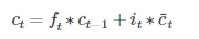 而当前时刻的单元状态由遗忘门输入和上一时刻状态的积加上输入门两部分的积,即