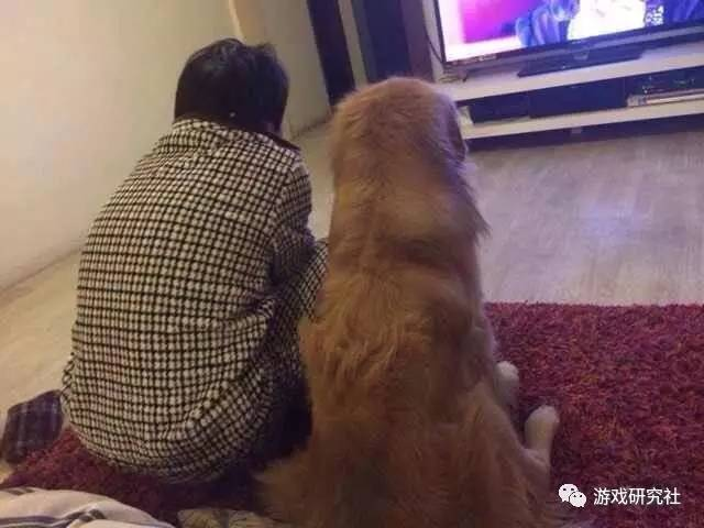 高大勇和爱犬“宝宝”正在一起看电视