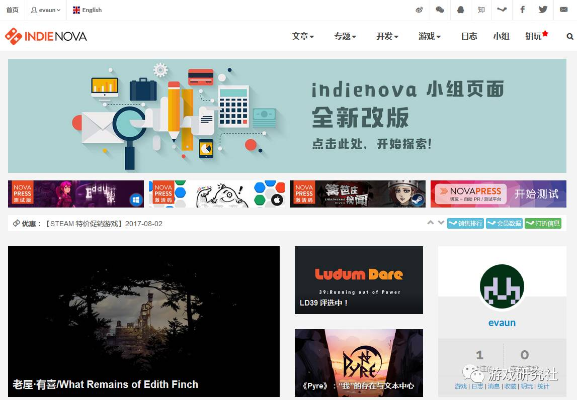 目前他的身份是知名独立游戏网站indienova的创始人,为国内外的游戏开发者们建立了一个方便的交流平台。