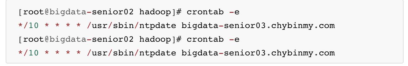 我们选择第三台机器(bigdata-senior03.chybinmy.com)为NTF服务器,其他机器和这台机器进行同步。