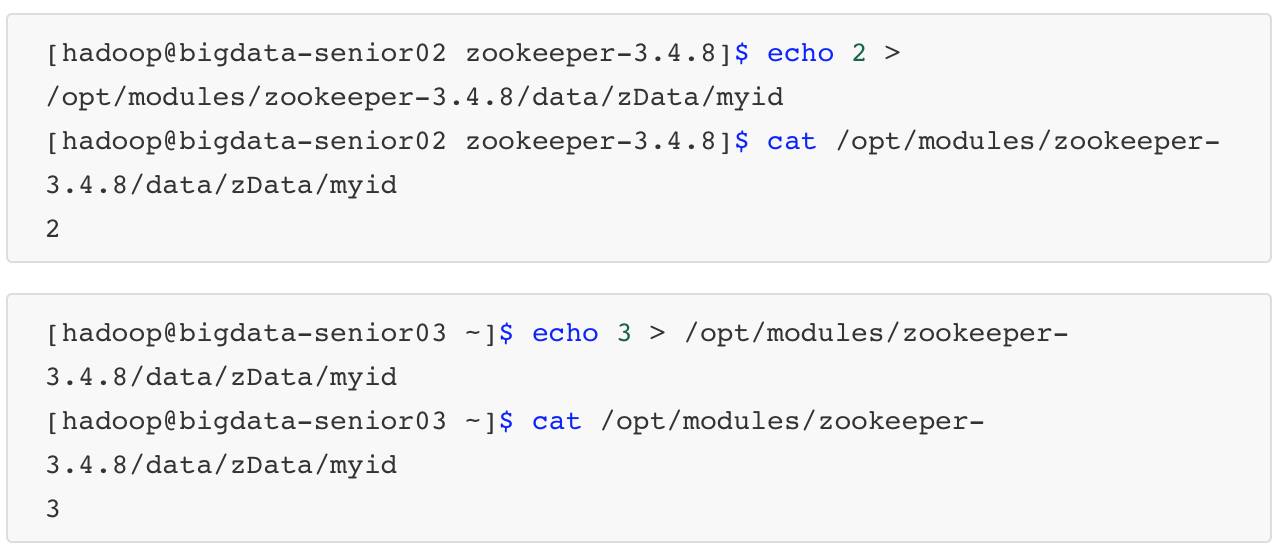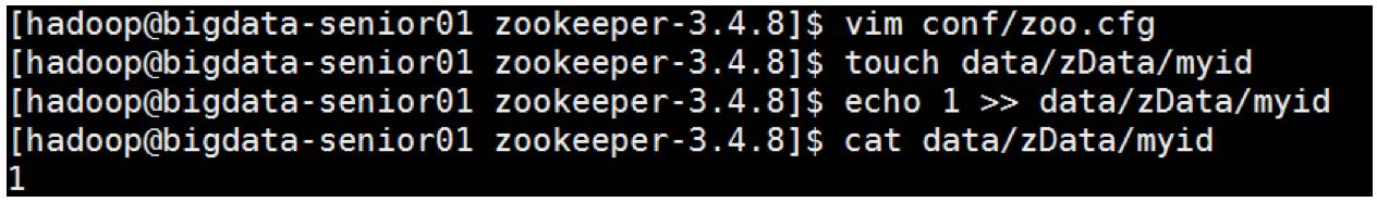 在 dataDir 所指定的目录下创一个名为 myid 的文件,文件内容为 server 点后面的数字。