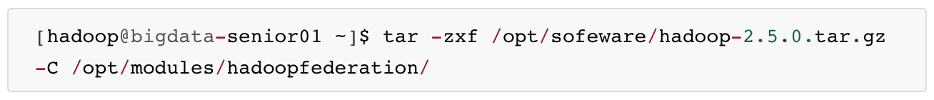 在bigdata01上创建目录/opt/modules/hadoopfederation /用来存放Hadoop Federation环境。