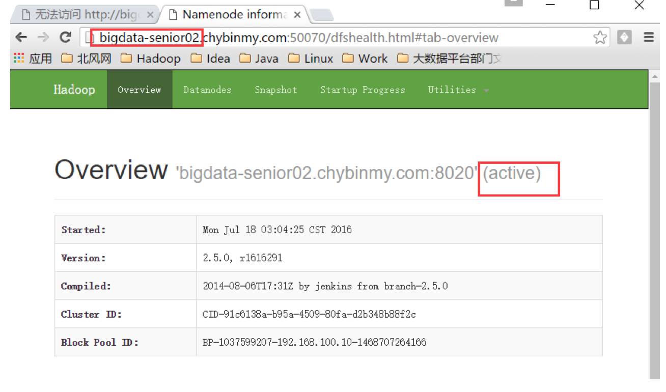 Web 客户端访问 bigdata02 机器上的 resourcemanager 正常,它是 active 状态的。