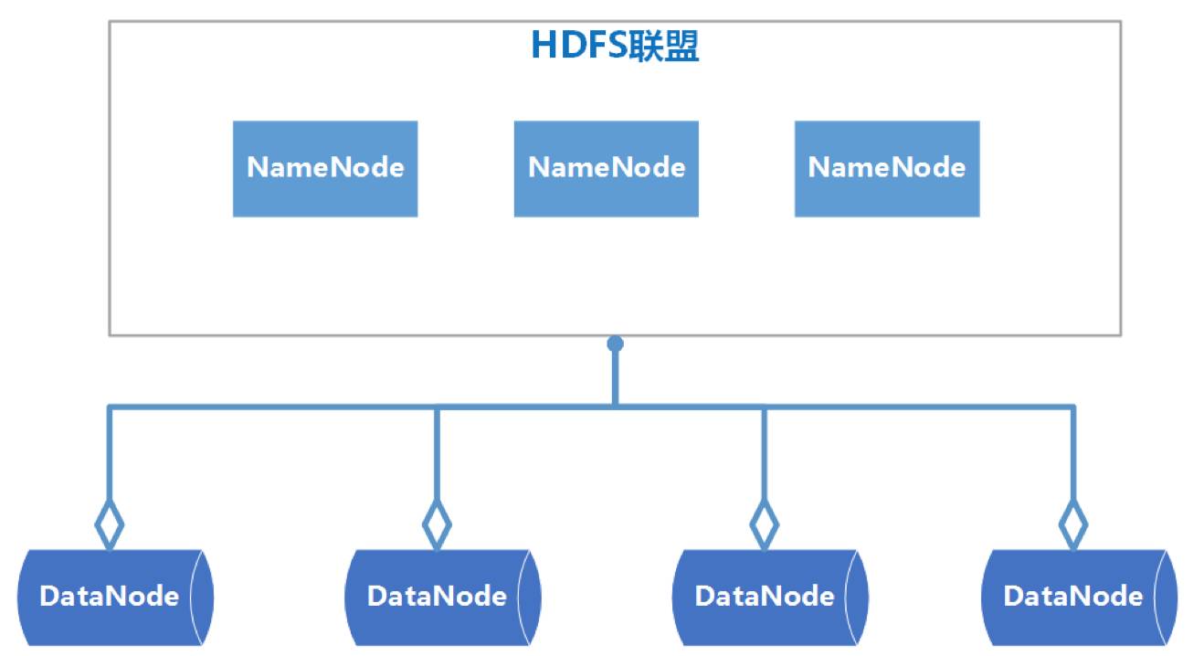 HDFS Federation 是可以在 Hadoop 集群中设置多个 NameNode,不同于 HA 中多个 NameNode 是完全一样的,是多个备份,Federation 中的多个 NameNode 是不同的,可以理解为将一个 NameNode 切分为了多个 NameNode,每一个 NameNode 只负责管理一部分数据。HDFS Federation 中的多个 NameNode 共用 DataNode。