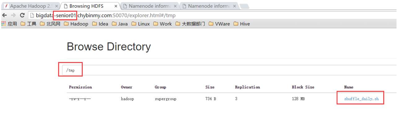 可以看到,刚才的文件只上传到了 bigdate-senior01 机器上的 NameNode 上了,并没有上传到其他的 NameNode 上去。