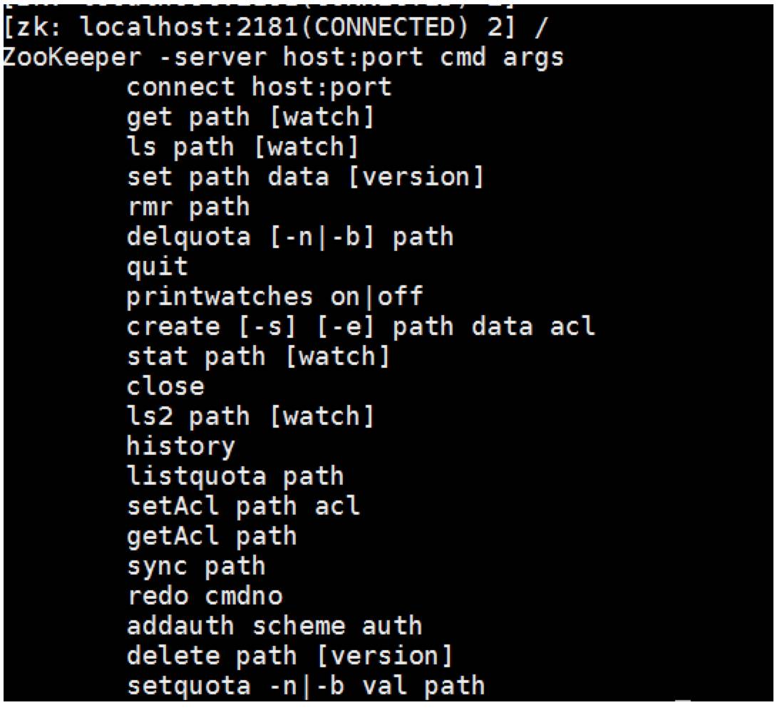 进入 zk shell 后输入任意字符,可以列出所有的 zookeeper 命令